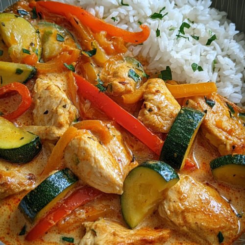 - Ein cremiges Gericht mit Hähnchen, Paprika und Zucchini, perfekt für ein Low Carb Rezepte Mittagessen.