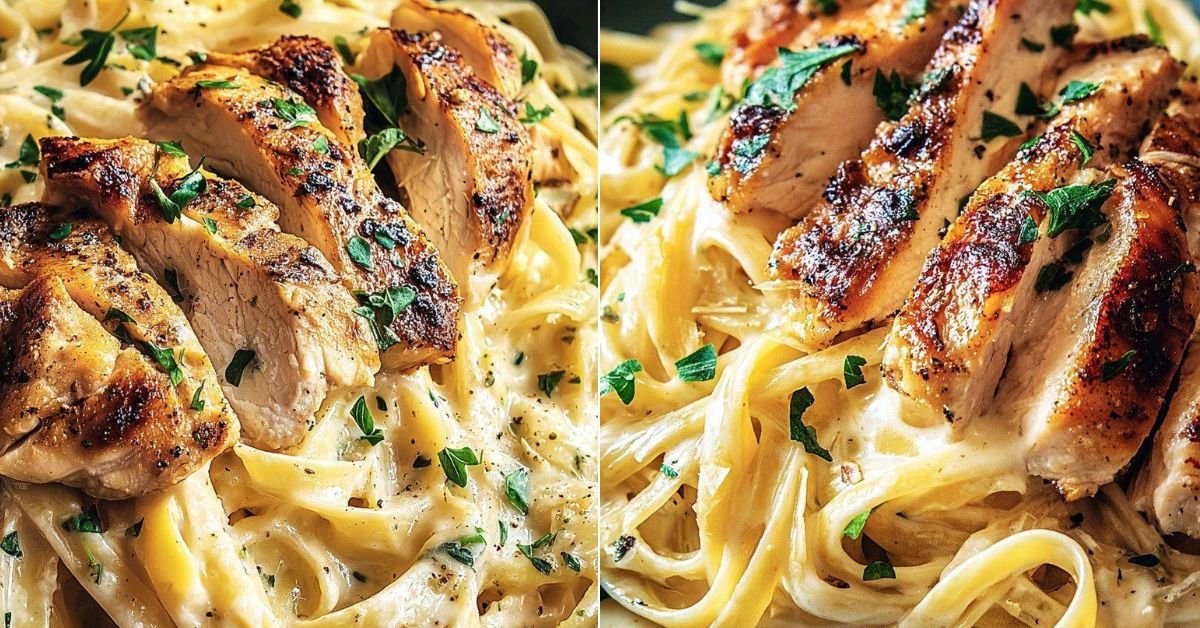 • Easy Pasta Alfredo mit gebratenem Hähnchen Recipe