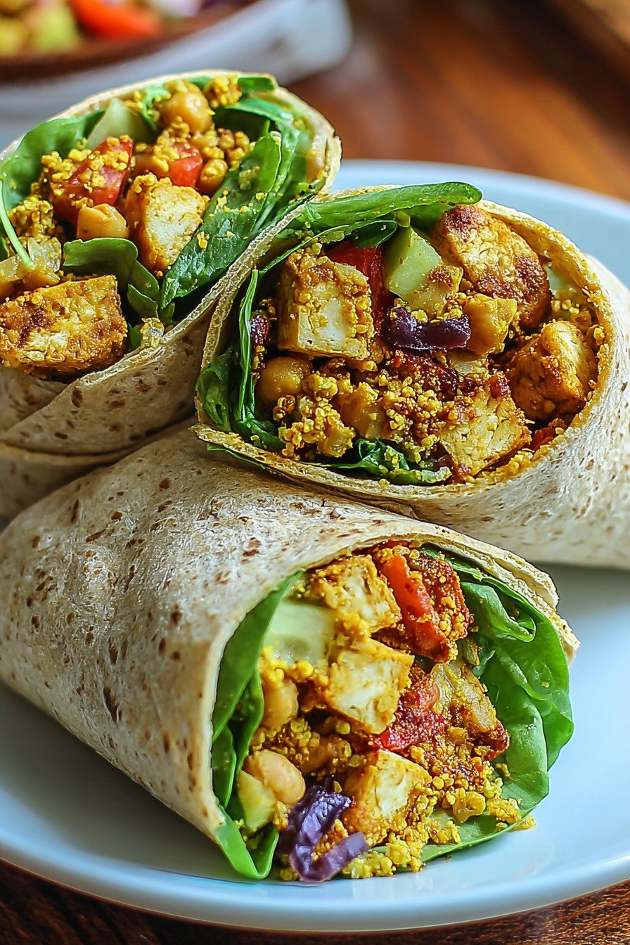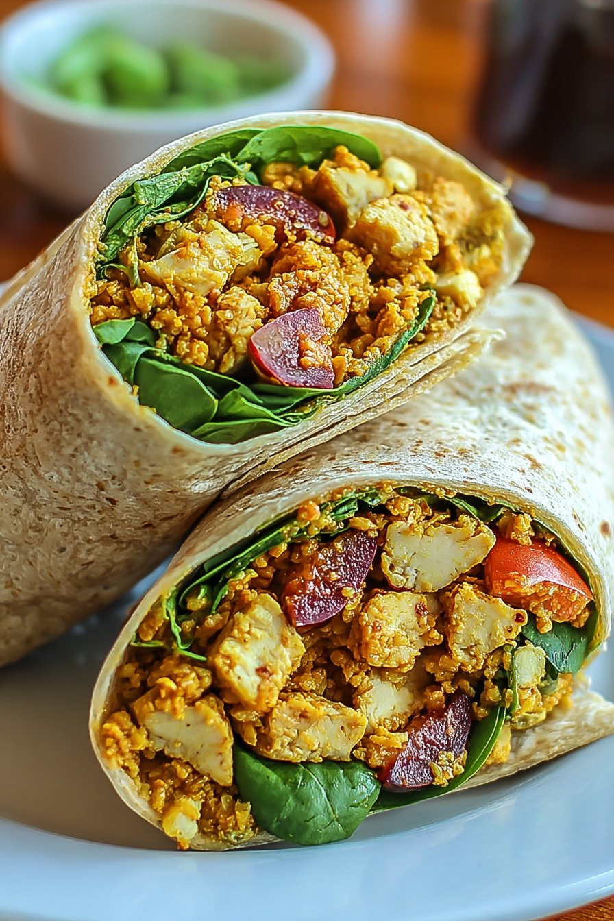 2) Easy High Protein Curried Tempeh Wraps Recipe