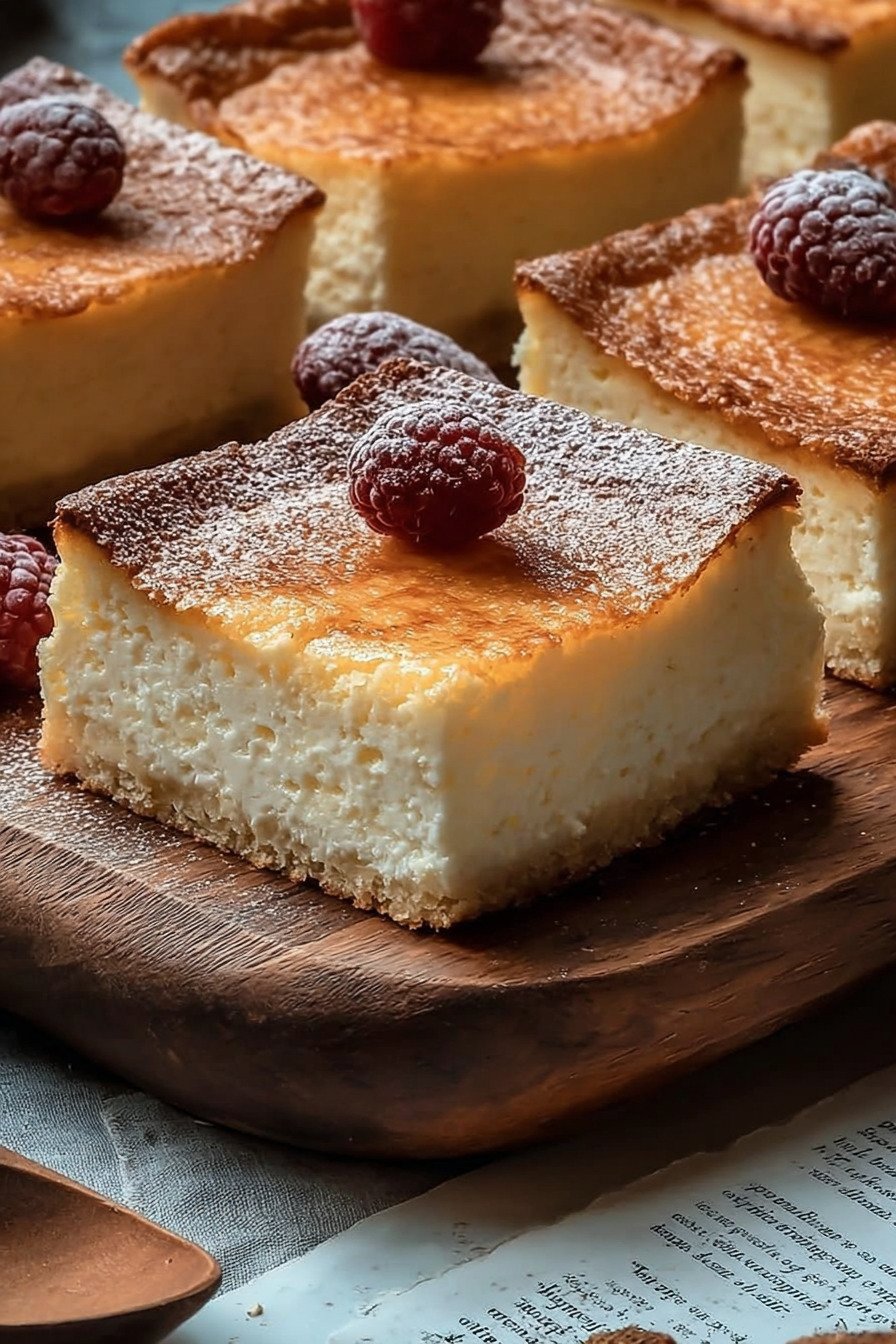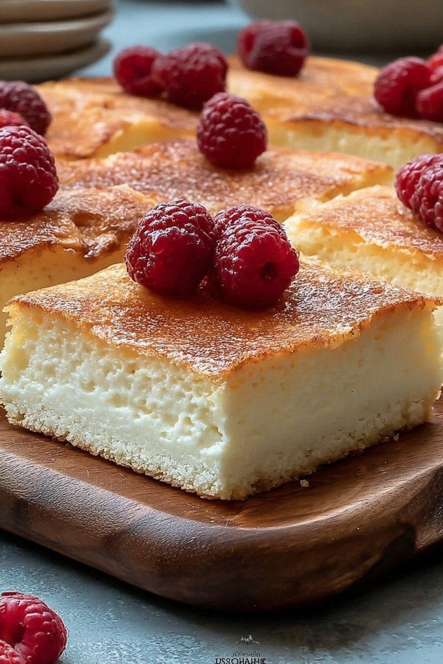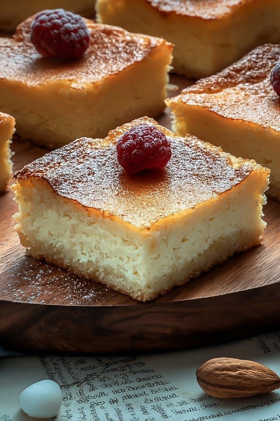 Step six Bake until the top shows pale gold and the center looks set. Cool on the pan. Slice and serve.