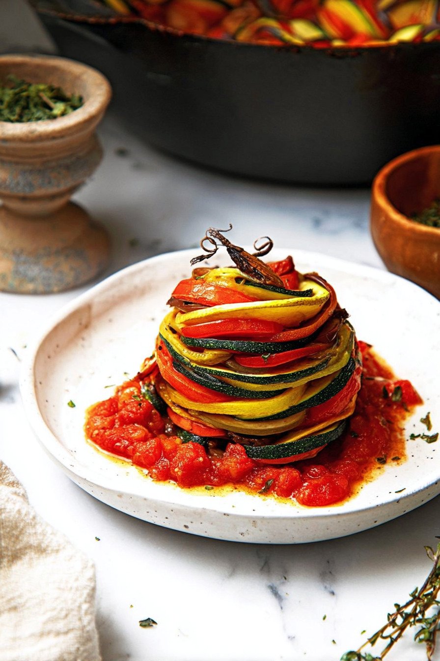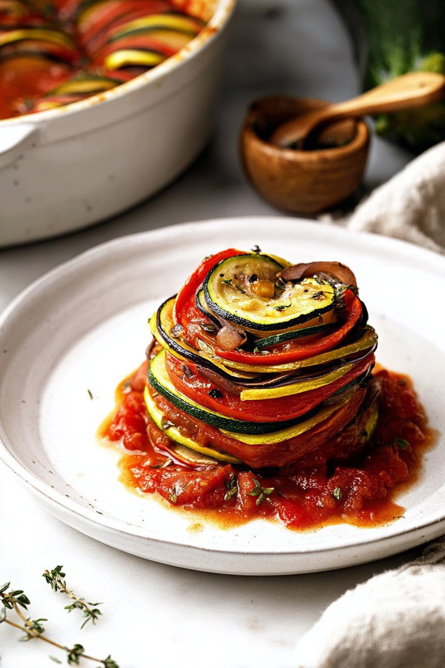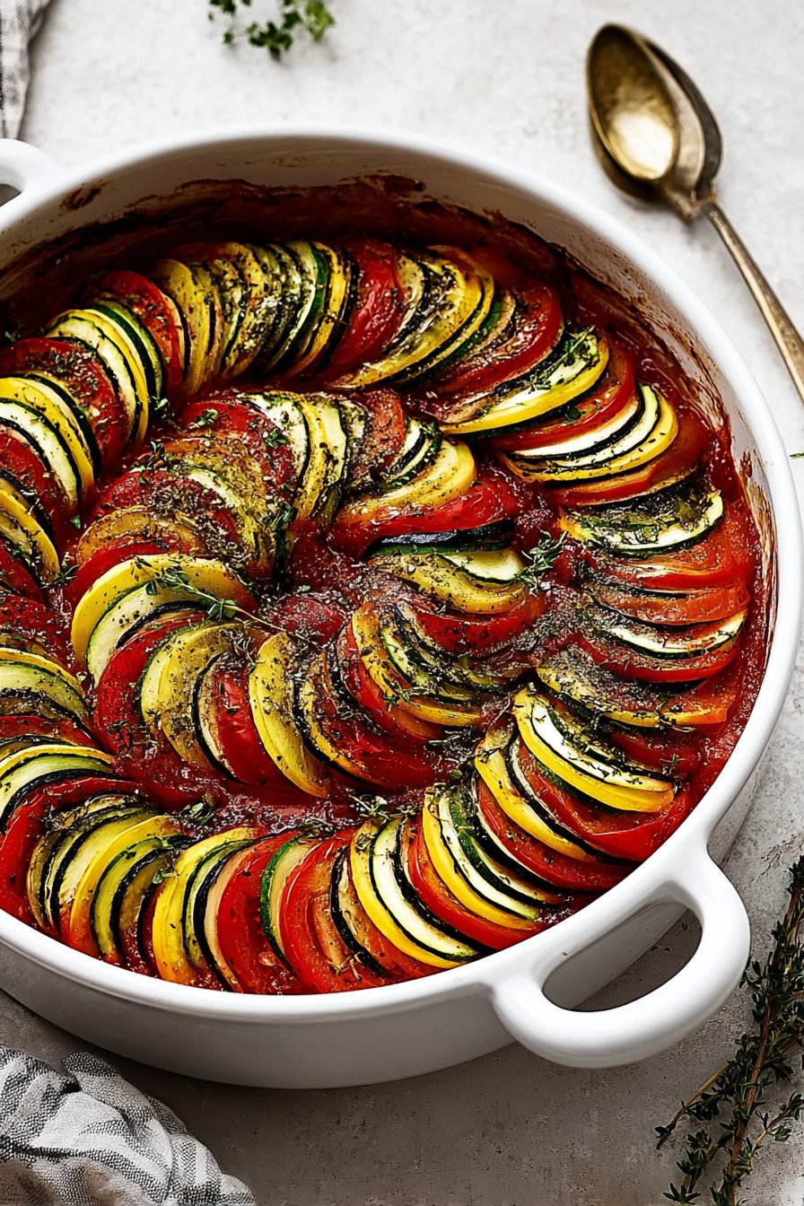 Lass das Ratatouille kurz stehen, bevor du es servierst. Die Aromen verbinden sich besser. Dieses kleine Detail macht viel aus. Genau solche Feinheiten liebe ich an ratatouille rezepte aus dem Ofen.
