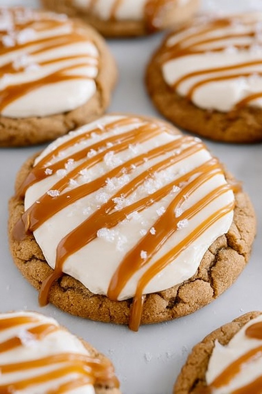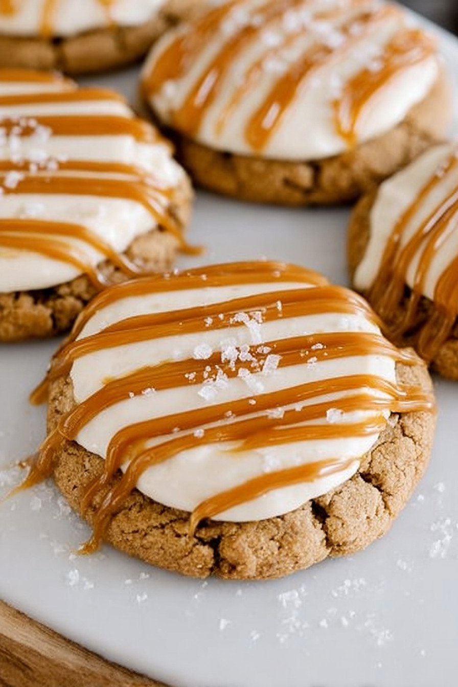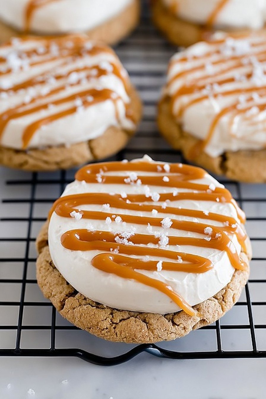 Step 6 Verziere die Cookies mit Karamellsauce und einer Prise Meersalz für das perfekte Salted Caramel Finish.