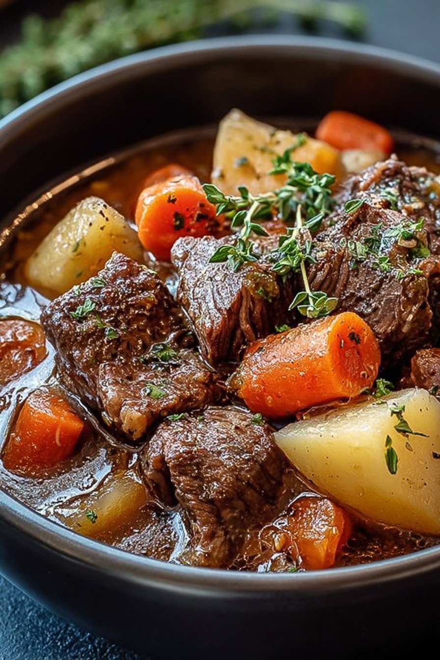 Eine Portion bringt Wärme und gute Sättigung. Der Topf liefert Eiweiß aus Rindfleisch, Ballaststoffe aus Gemüse und Stärke aus Kartoffeln. Wer leichter essen will, nimmt mehr Möhren und etwas weniger Kartoffeln. Wer kräftiger mag, ergänzt Pilze. Ich rechne pro Person mit einer großen Schöpfkelle und einem Stück Brot. So bleibt der Abend ruhig und alle fühlen sich gut versorgt.