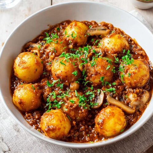 Die Mini Knödel Pfanne gehört zu den Gerichten, die ohne Stress gelingen. Du brauchst wenig Zeit in der Küche und bekommst trotzdem ein Ergebnis, das alle begeistert. Die Kombination aus veganem Hack, frischen Pilzen und weichen Knödeln macht satt und zufrieden.
