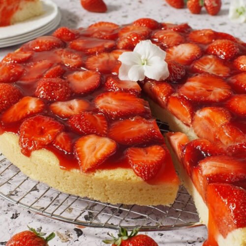 Auch lohnt es sich, frische Erdbeeren erst kurz vor dem Servieren auf den Boden zu legen. So bleibt die Oberfläche ansprechend und der Kuchen wirkt appetitlich bis zum letzten Stück.