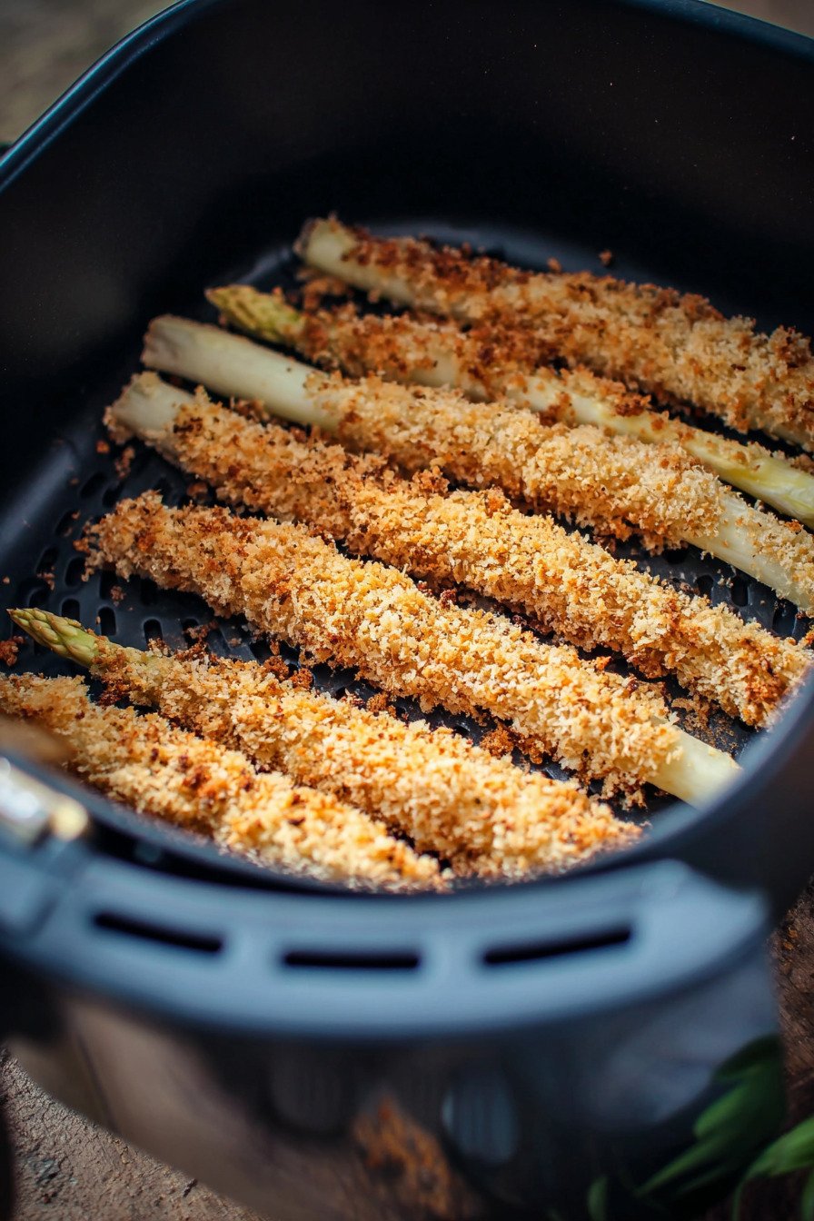Bread crumbs fine crumbs bake into a clean crunch and keep the texture light which suits a tender spear