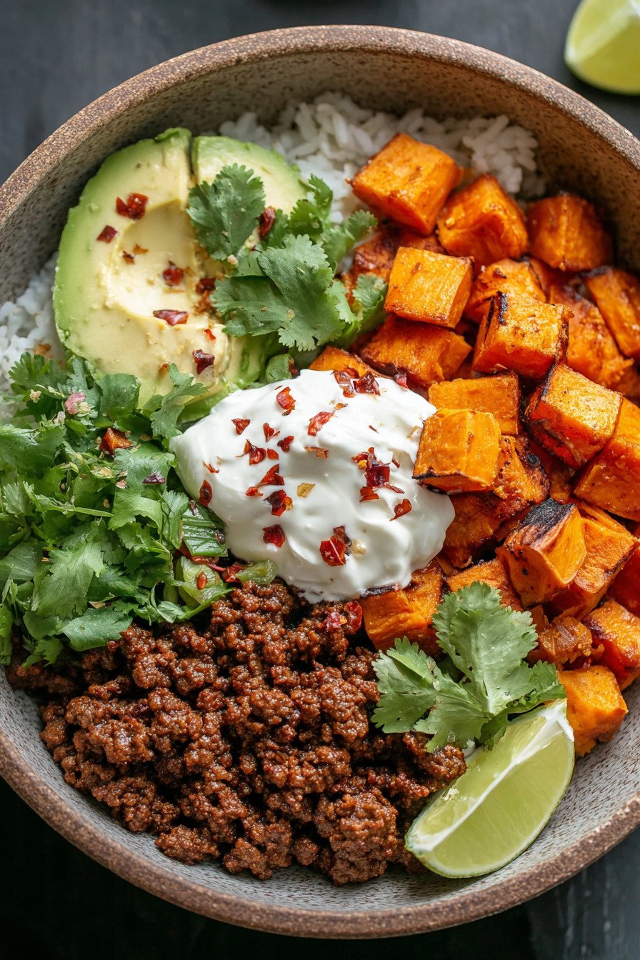 Wenn du auf der Suche nach einfachen und leckeren meal prep rezepte bist, dann ist diese Sweet Potato Taco Bowl genau das Richtige für dich. Diese köstliche Kombination aus gerösteten Süßkartoffeln, frischen Zutaten und würzigen Aromen passt perfekt in deinen Alltag und lässt sich wunderbar vorbereiten. Besonders Fans von Bowl Rezepte und kreativen Bowl Ideen werden dieses Gericht lieben. Die Bowl vereint alles, was du dir von einem Taco Salat Rezept wünschst – nur noch besser! Mit gesunden Komponenten wird sie schnell zu deiner neuen Lieblings-vegetarische Bowl. Ob als schnelles Mittagessen oder leichtes Abendessen, diese Avocado Bowl bringt Abwechslung und Geschmack in deine Küche. Dank der cremigen Komponenten erinnert sie sogar an eine moderne Joghurt Bowl, jedoch in herzhafter Variante. Diese Kombination macht sie ideal für alle, die gesunde und abwechslungsreiche meal prep rezepte suchen, ohne auf Genuss zu verzichten.