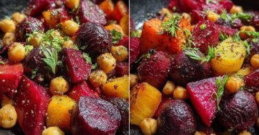 Geröstete Rote Bete Rezept mit Knoblauch und Kichererbsen