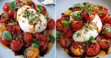 Italienische Rezepte Vorspeise Burrata mit geschmorten Balsamico...