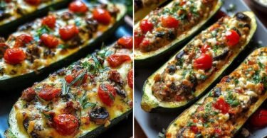 Vegetarisches Abendessen Mediterrane Gefüllte Zucchini