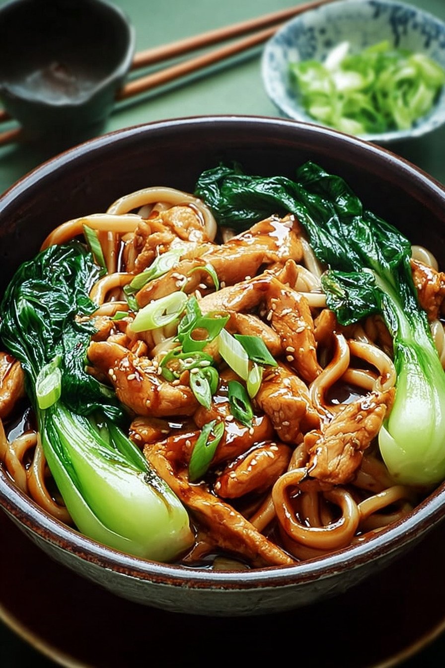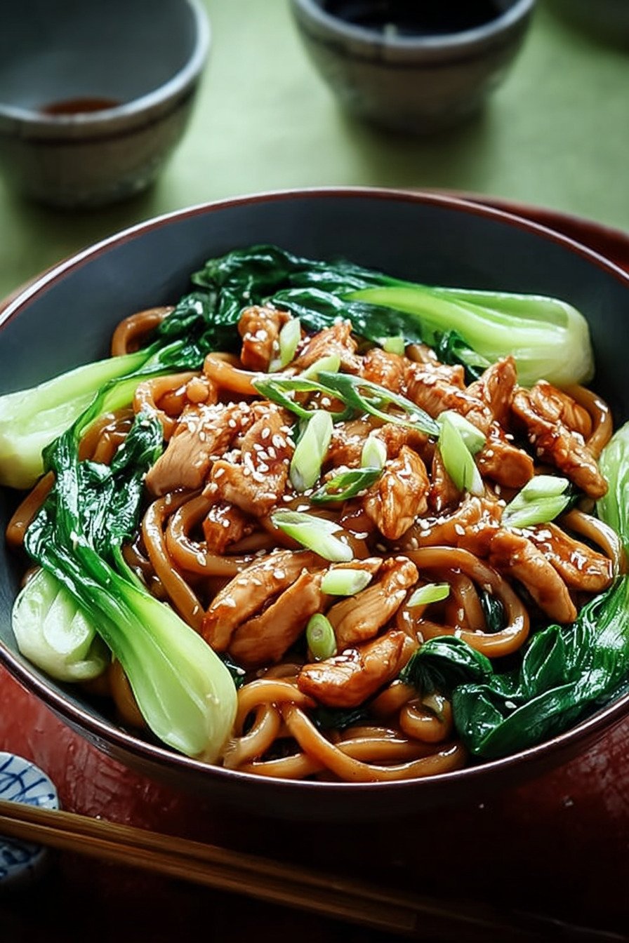 We cook this bowl when the day runs fast and we still crave comfort. Teriyaki Hähnchen hugs thick Udon and tender Choy Sum. The sauce feels rich, sweet and salty. Steam rises. I lean in and the soy and ginger hit first. The bite stays bouncy. This is our kind of kitchen win and it belongs with asia rezepte and the way we like to eat at home. I learned this on a weeknight when the fridge looked bare. A pack of Udon waited. A small bunch of greens smiled from the drawer. We mixed a quick Teriyaki Soße Rezept and the pan did the rest. If you cook for friends who ask for Asia Nudeln or search for an Asia Nudeln Rezept, this dish makes happy plates. Vegetarians at the table can take a pan with tofu for a spin and keep the joy of Asia Nudeln Vegetarisch. Meat eaters cheer since Hähnchen Rezepte stay friendly and fast. Leftovers chill well and love a crisp salad side. Try a bright Salat Mit Hähnchen on another night and keep the easy rhythm of noodles and greens.