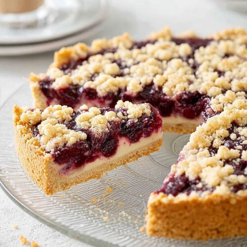 This is one of those kirschkuchen mit streusel options that doesn’t dry out fast. The pudding works like a moisture shield, which makes it ideal for make-ahead or next-day desserts.