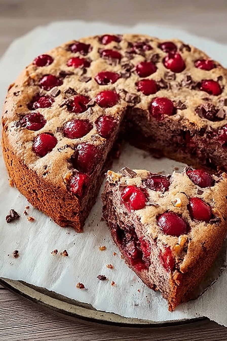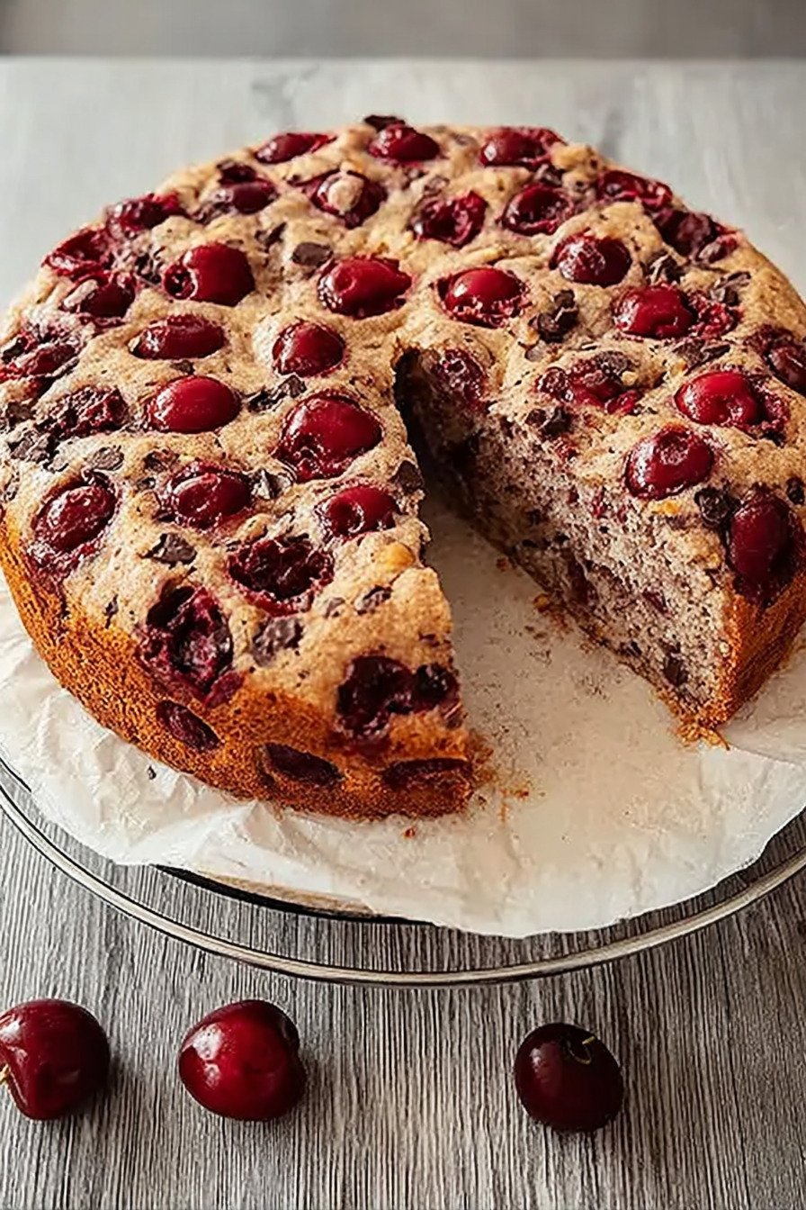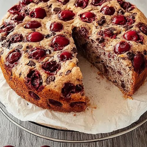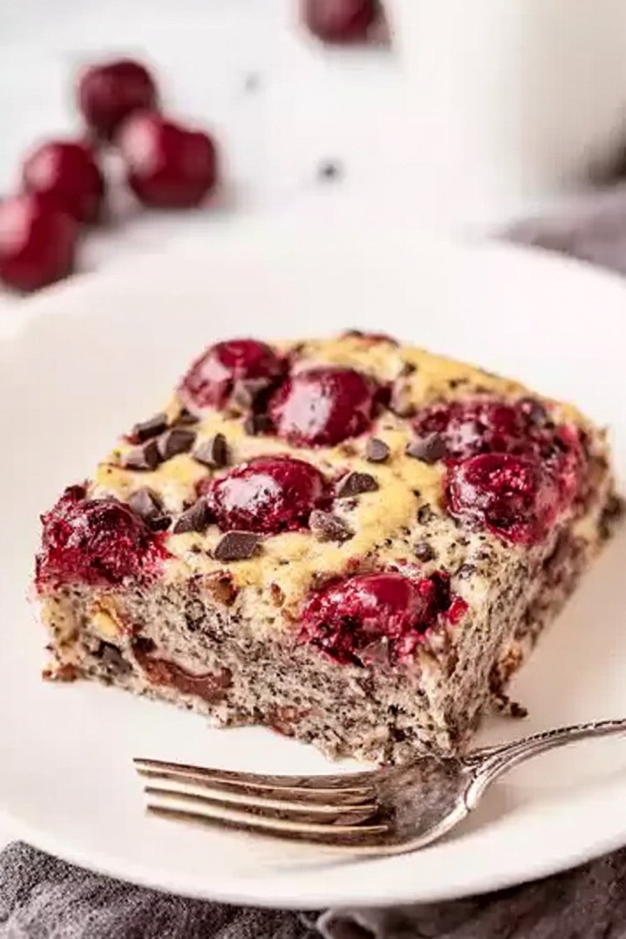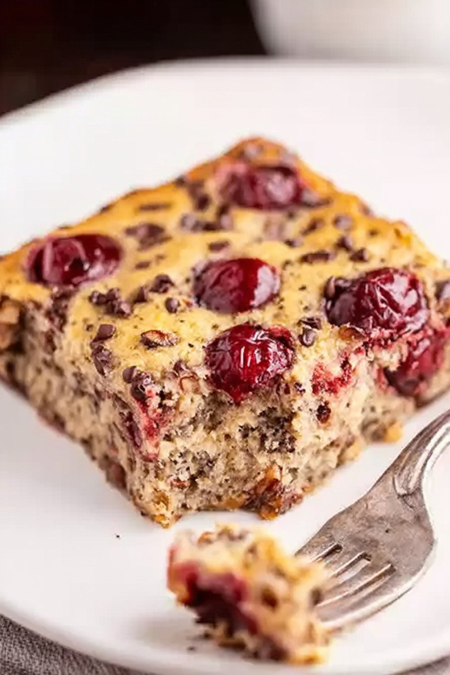 The method uses one bowl and steady steps. The batter looks smooth. The cherries rest on top and sink a little. You cut neat squares and serve with quiet pride. A home smell fills the room and that smell feels like a hug you can eat.