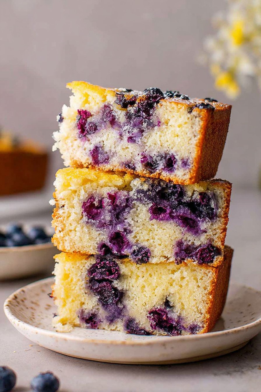 Blueberries Fresh or frozen both work. I fold them in with a soft hand so skins stay whole and juice does not stain too much. I toss them in a spoon of flour so they do not sink. Each slice gets dots of color and sweet bites.