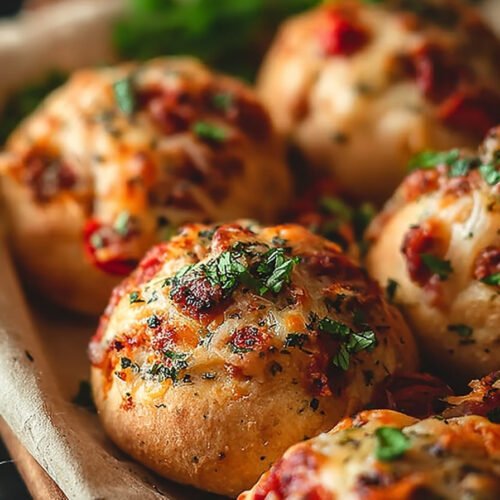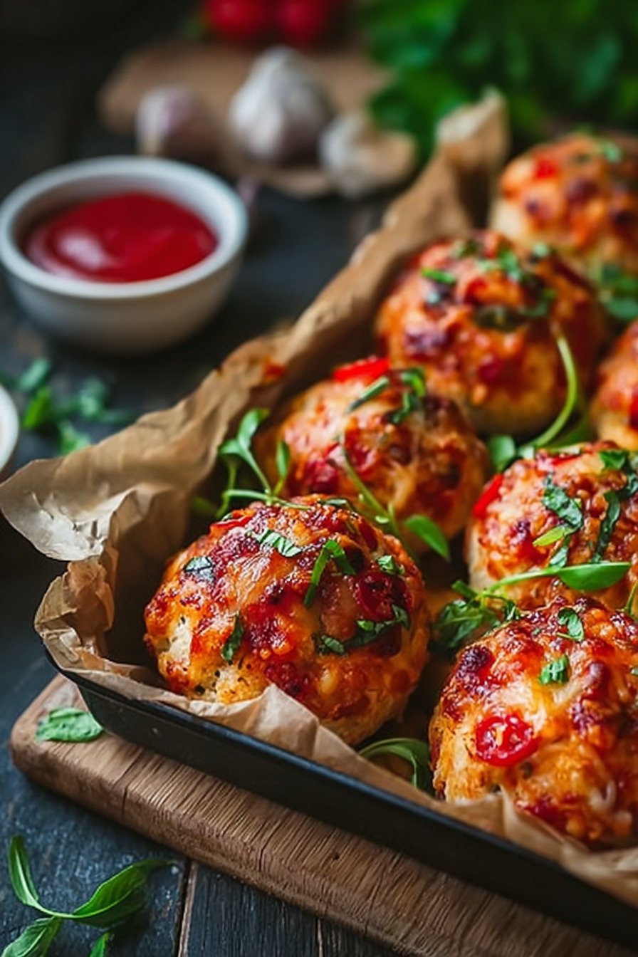 Tomatensauce Sie bringt saftige Würze und den klassischen Pizza-Geschmack in die Füllung. Eine kräftig gewürzte Sauce mit Kräutern macht die Bällchen besonders aromatisch.