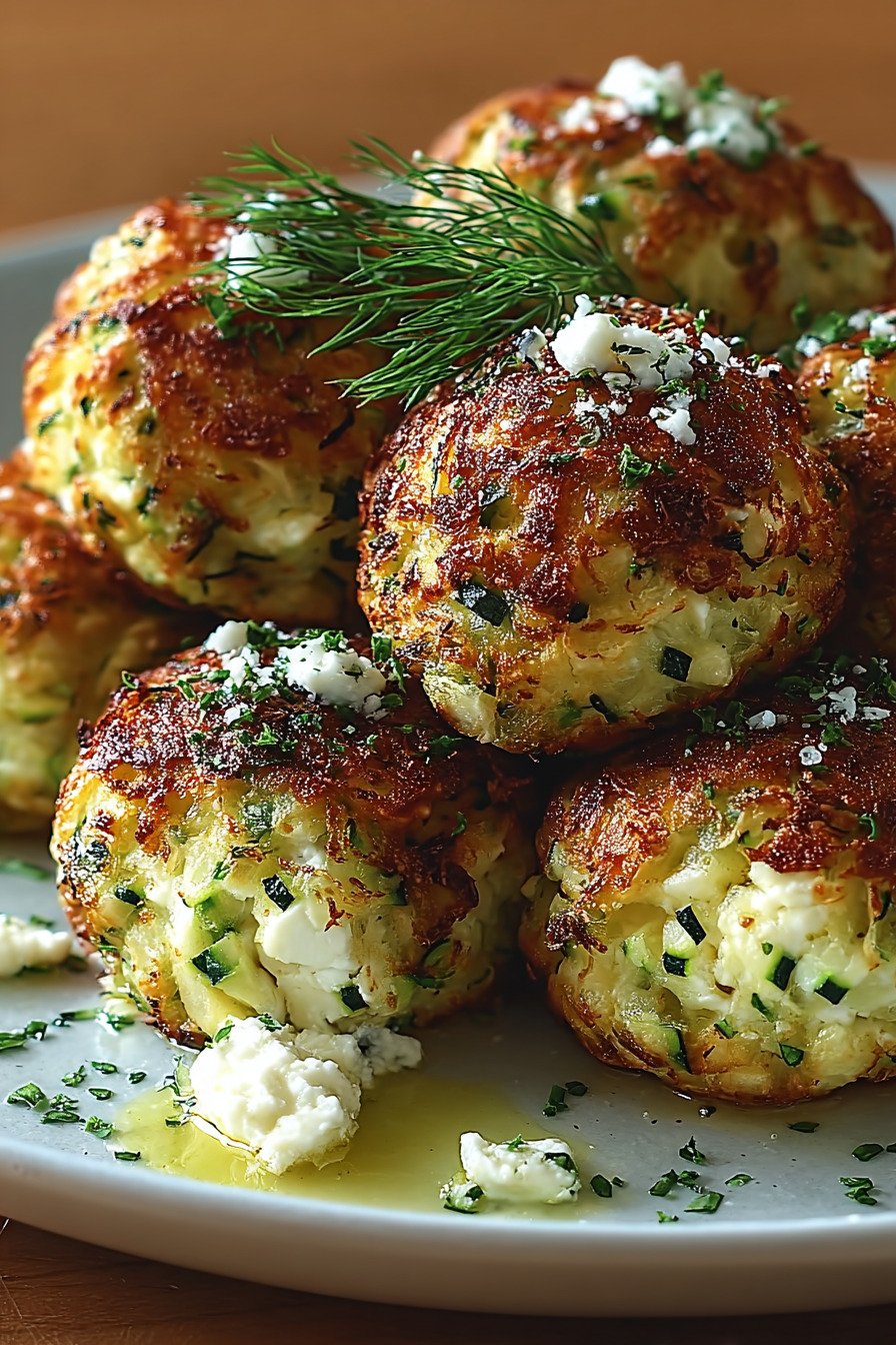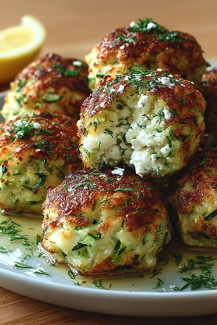 The mix comes together fast. We grate zucchini and press out water. We fold in feta and herbs and crumbs. We roll small balls and set them on a tray. Heat does the rest. Each bite carries salt from cheese and freshness from parsley. I like a cool yogurt dip on the side.