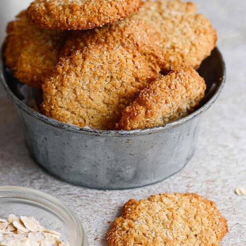 Haferflocken: Sie bilden die Basis des Teigs und bringen eine feine Textur mit. Haferflocken sind leicht erhältlich und geben den Keksen eine gesunde Note.