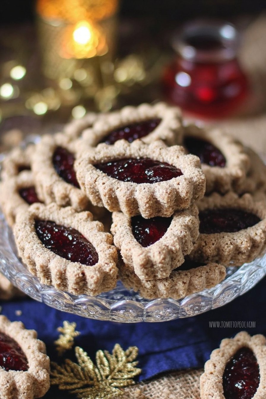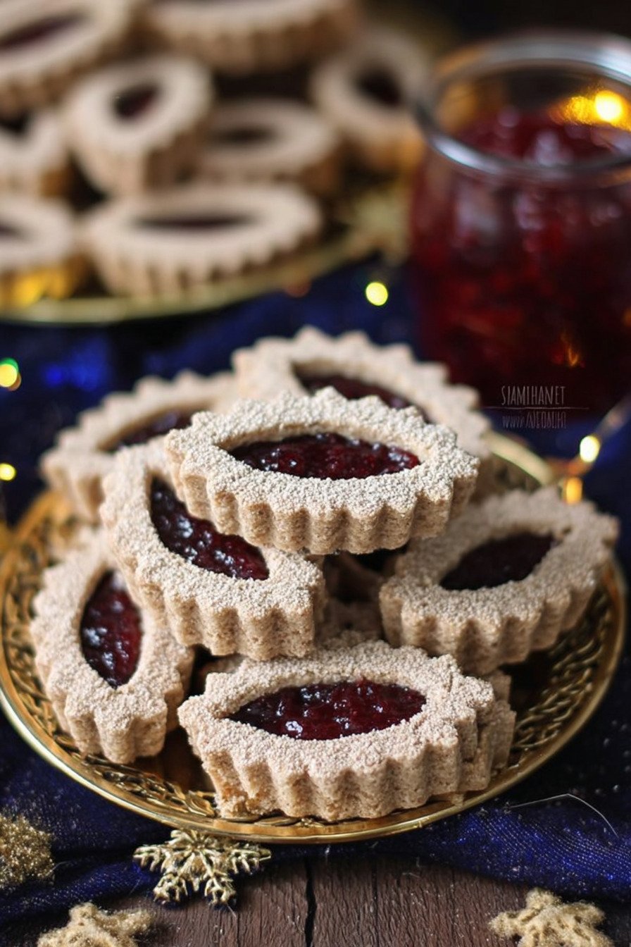 Bake shells and store them plain. Use a tin with paper between layers. Fill on the day you share them. The crisp edge meets the soft jam and feels perfect. holiday cookie recipes shine with this plan.