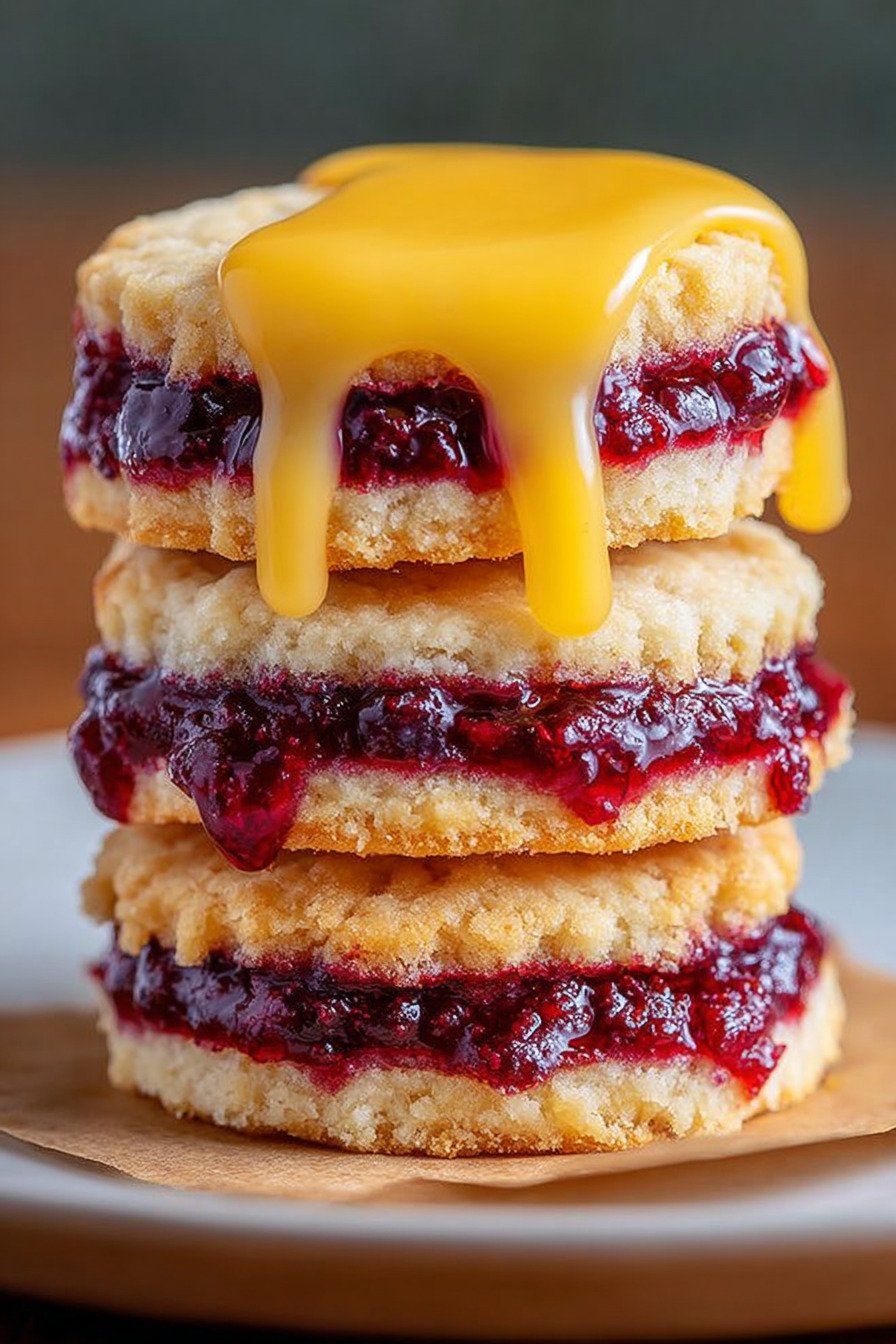 - 2 Easy Stacked Cookies With Berry Filling And Lemon Glaze Recipe