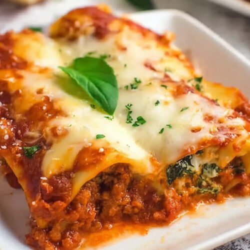 Cannelloni mit der Hackmischung füllen. In die Form legen.